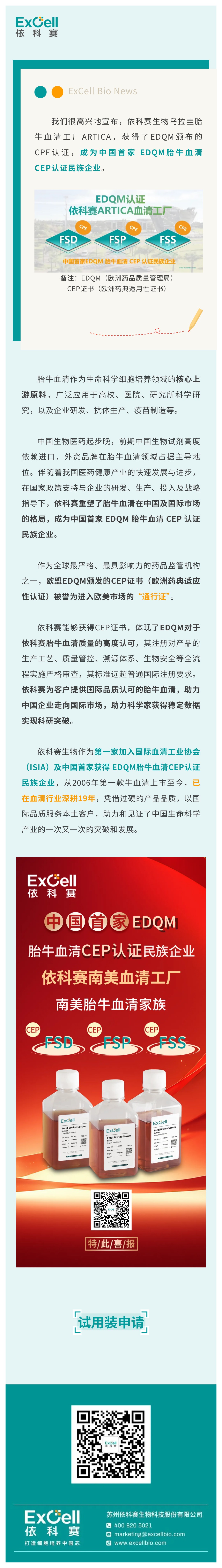 國(guó)際品質(zhì) 本土服務(wù):國(guó)內(nèi)首家獲得EDQM胎牛血清CEP認(rèn)證企業(yè),賦能細(xì)胞培養(yǎng)